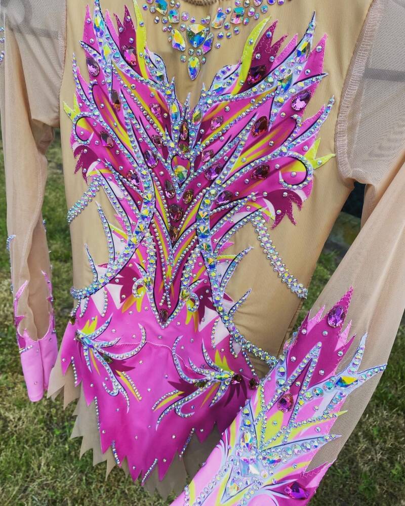 Ook wedstrijdpakken kunnen volledig ontworpen worden of naar wens aangepast worden. Kies zelf een patroon, of je mouwen en/of een rokje wil, hoeveel glittersteentjes er op mogen, ...