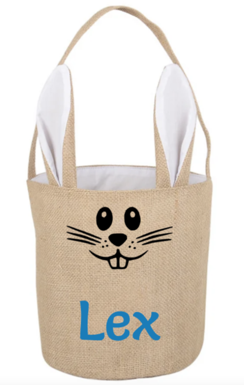 De tas is gemaakt van jute met een witte stof aan de binnenkant. Er staan schattige oortjes bovenaan en hij heeft een handvat zodat je hem makkelijk kan dragen.